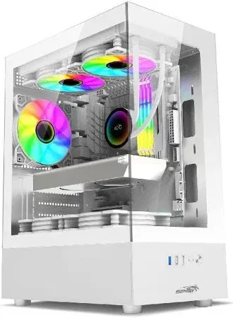 El Sentey H10 es un gabinete de formato Mid-Tower compacto, diseñado específicamente para motherboards de tamaño Micro-ATX e ITX. Su principal atractivo es la estética visual, potenciada por los ventiladores ARGB incluidos y el doble panel de vidrio templado que maximiza la exhibición del hardware.